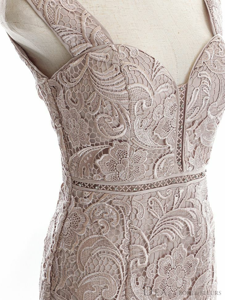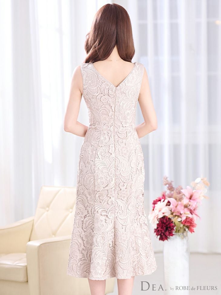 スタイルが綺麗に見えるマーメイドシルエット☆ [DEA.byROBEdeFLEURS/ディアバイローブドフルール] 高級ケミカルレースハートカットデザインマーメイドノースリーブタイト膝丈ワンピースドレス