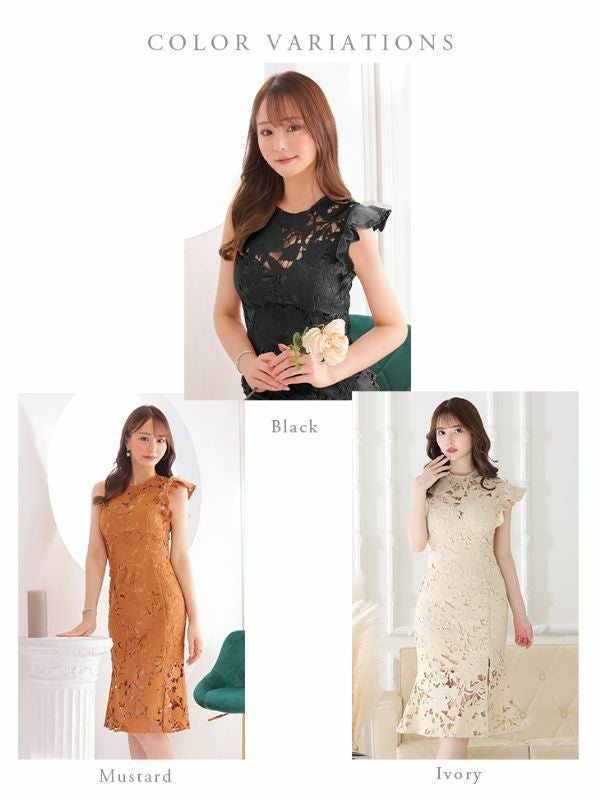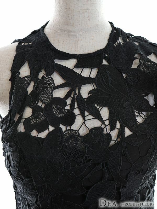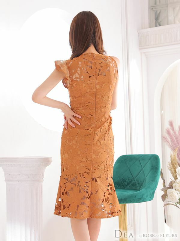 キャバドレス ミニドレス [SALE] DEA.byROBEdeFLEURS ディアバイローブドフルール 高級ケミカルレースアシンメトリーワンピースフリルノースリーブ膝丈ドレス