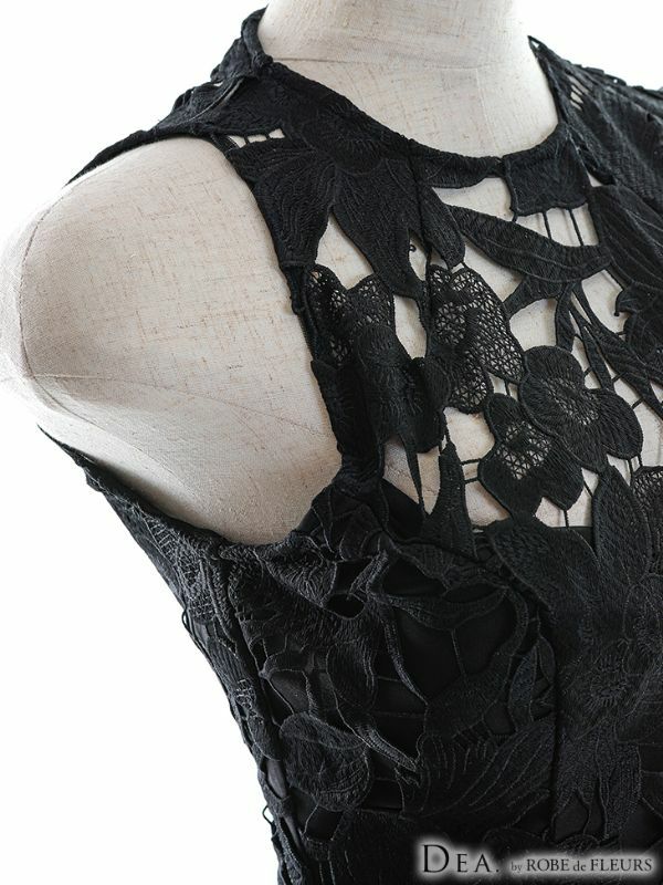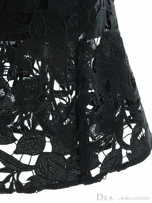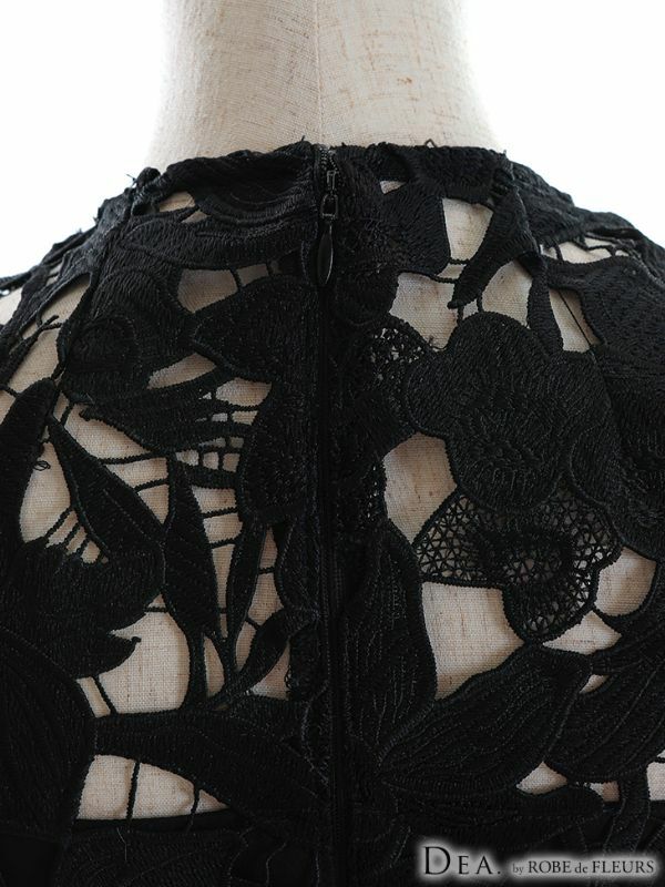 ケミカルレースがエレガント☆ [DEA.byROBEdeFLEURS/ディアバイローブドフルール] 高級ケミカルレースアシンメトリーワンピースフリルノースリーブ膝丈ドレス