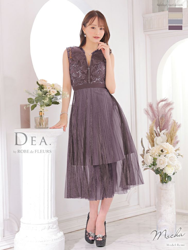 DEA.byROBEdeFLEURS ディアバイローブドフルール 高級ノースリーブジップケミカルレース切替ワンピースチュールフレア膝丈ドレス