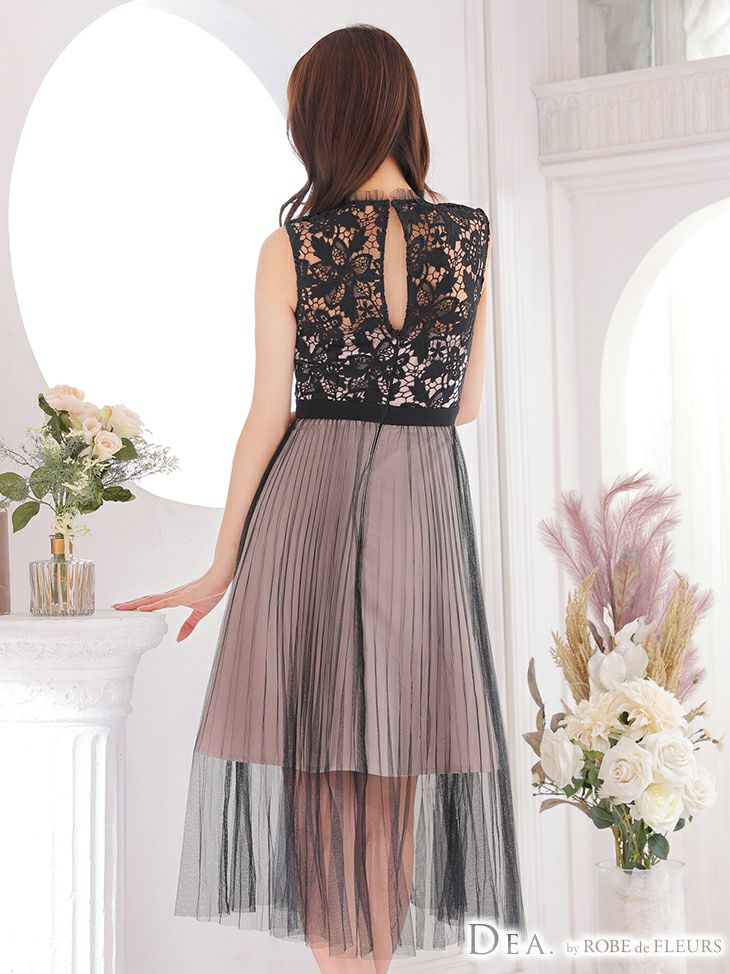 4. [DEA.byROBEdeFLEURS/ディアバイローブドフルール] 高級ノースリーブジップケミカルレース切替ワンピースチュールフレア膝丈ドレス