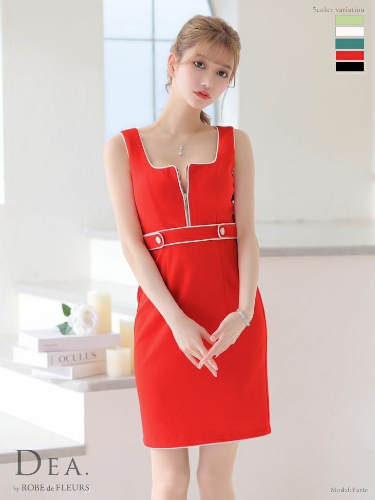5. [DEA.byROBEdeFLEURS/ディアバイローブドフルール] 高級フロントジップストレッチノースリーブタイトミニドレス
