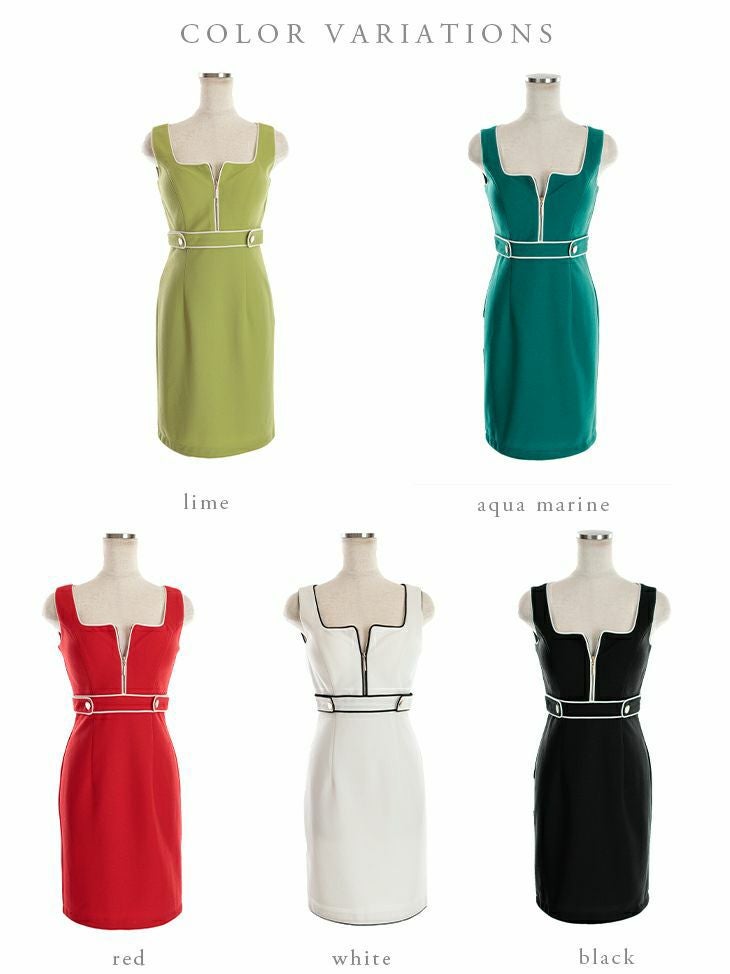 4. [DEA.byROBEdeFLEURS/ディアバイローブドフルール] 高級フロントジップストレッチノースリーブタイトミニドレス