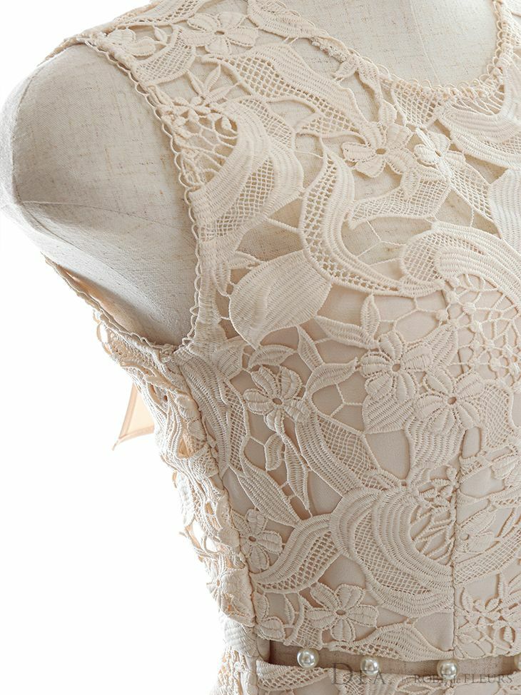 5. [DEA.byROBEdeFLEURS/ディアバイローブドフルール] 高級ケミカルレースバックリボンウエストパールワンピースノースリーブマーメイド膝丈ドレス
