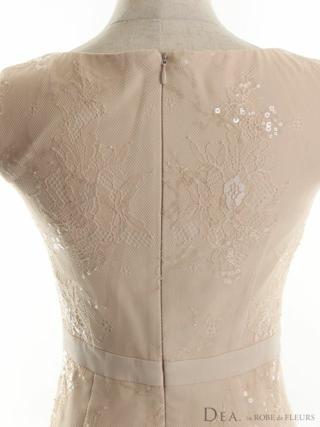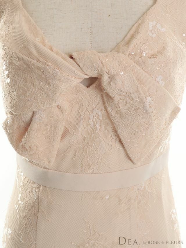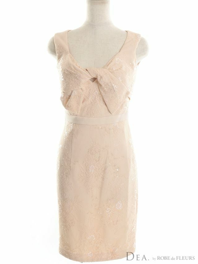 4. [DEA.byROBEdeFLEURS/ディアバイローブドフルール] 高級スパンコール総レースバストリボンノースリーブタイト膝丈ドレス
