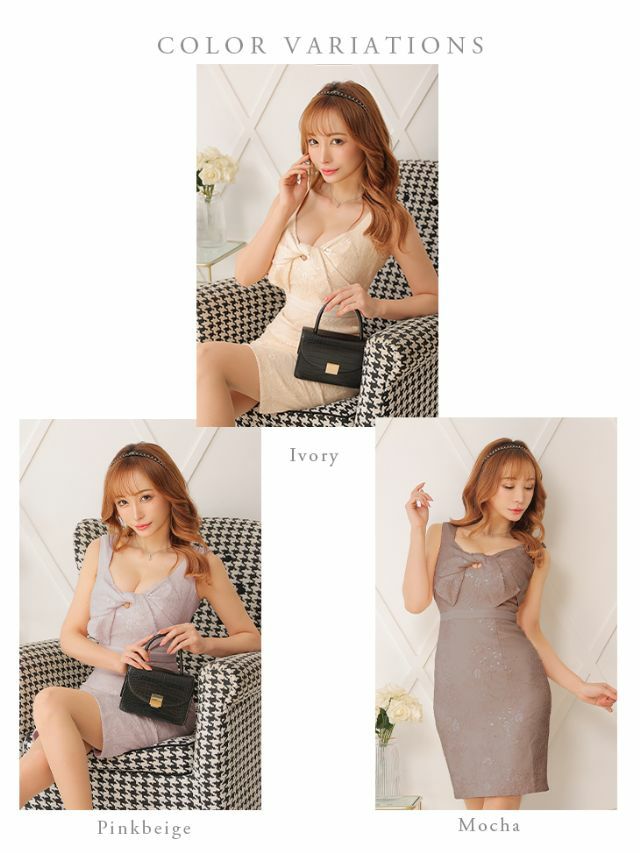 キャバドレス ミニドレス [SALE] DEA.byROBEdeFLEURS ディアバイローブドフルール 高級スパンコール総レースバストリボンノースリーブタイト膝丈ドレス