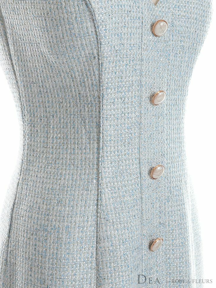5. [DEA.byROBEdeFLEURS/ディアバイローブドフルール] 高級ラメツイードビジューボタンマーメイドノースリーブワンピース膝丈ドレス