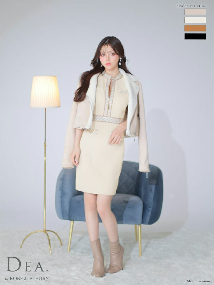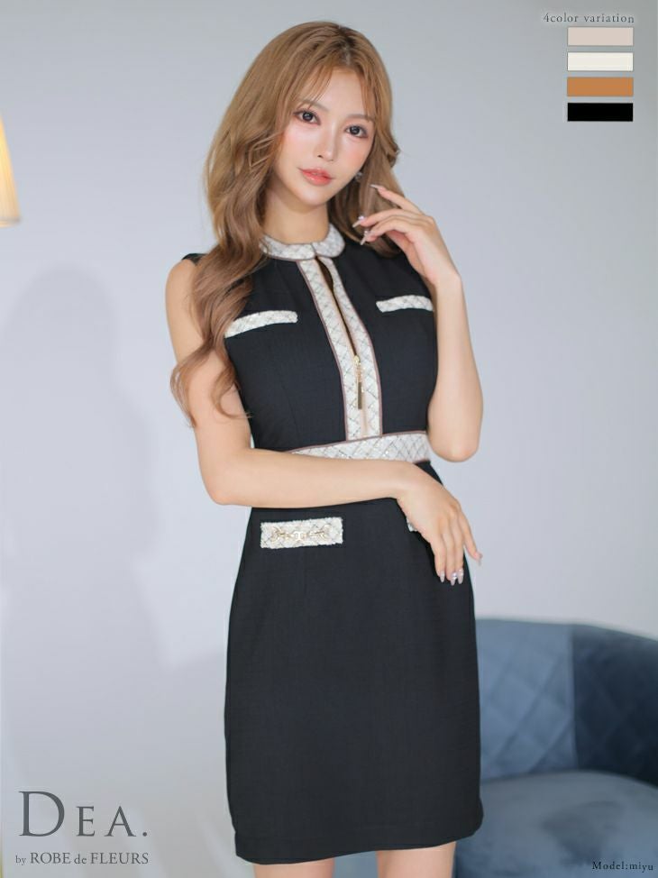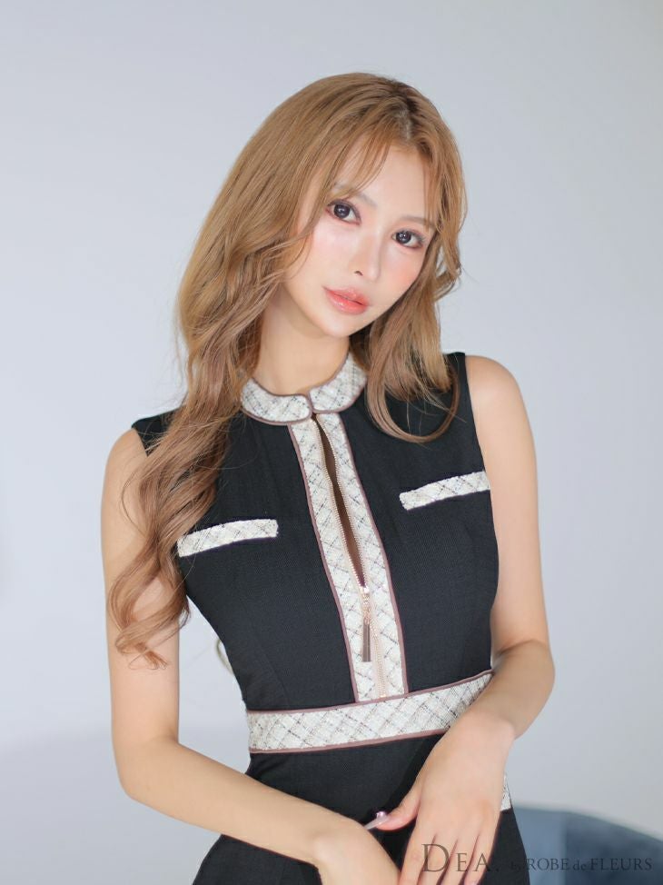 キャバドレス ミニドレス [DEA.byROBEdeFLEURS/ディアバイローブドフルール] 高級フロントジップチェックラメツイードノースリーブタイトミニドレス