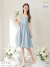 6. SALE [DEA.byROBEdeFLEURS/ディアバイローブドフルール] 高級ベルト付きハートカットフロントボタンツイードノースリーブフレア膝丈ドレス