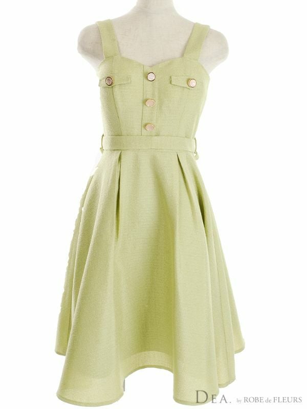 5. SALE [DEA.byROBEdeFLEURS/ディアバイローブドフルール] 高級ベルト付きハートカットフロントボタンツイードノースリーブフレア膝丈ドレス