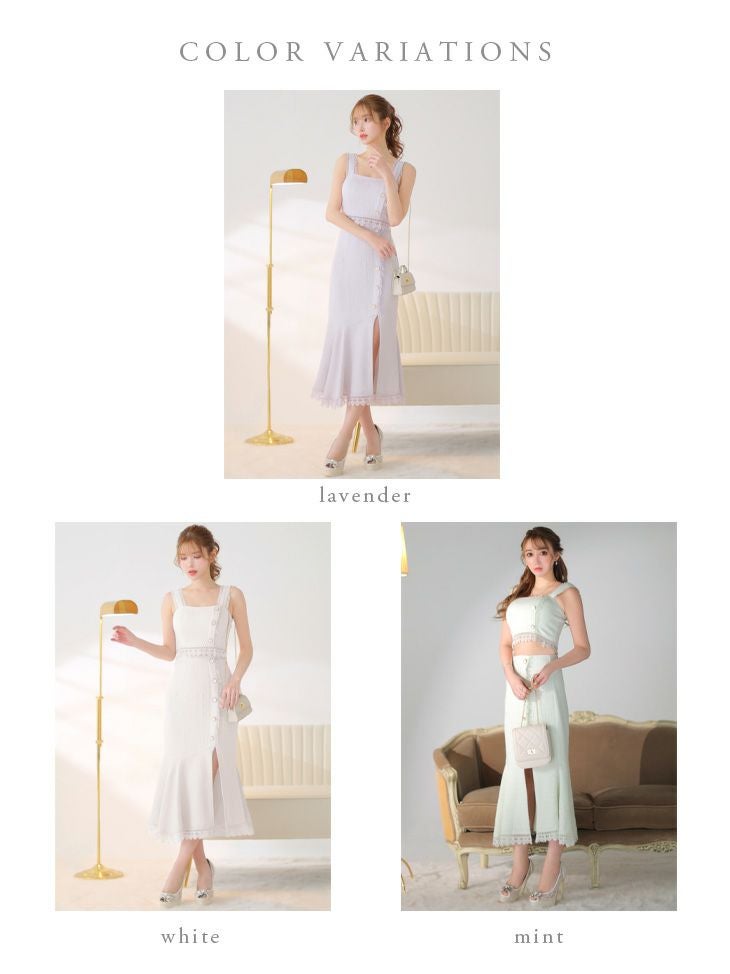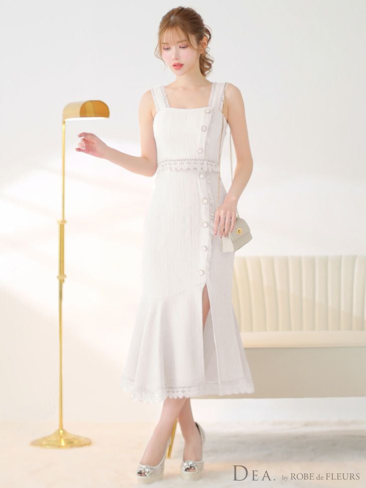 キャバドレス ブランドドレス DEA.byROBEdeFLEURS ディアバイローブドフルール 高級スプリングツイードレースセットアップボタンワンカラースリットノースリーブ膝丈ドレス