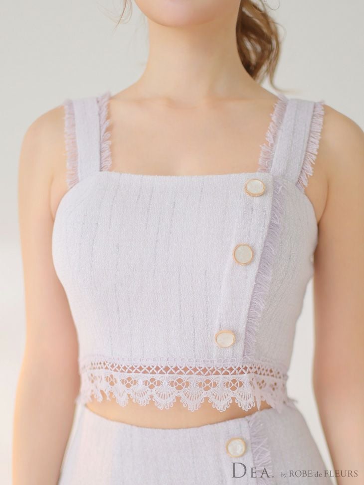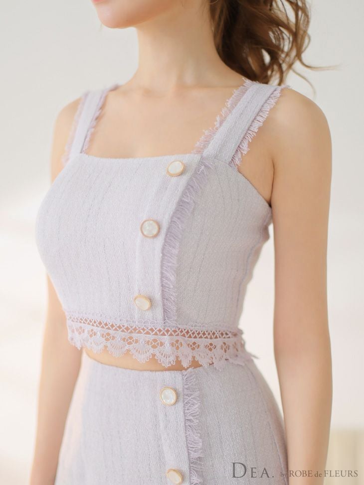 可愛いとセクシーのあざとデザイン★ [DEA.byROBEdeFLEURS/ディアバイローブドフルール] 高級スプリングツイードレースセットアップボタンワンカラーノースリーブ膝丈ドレス