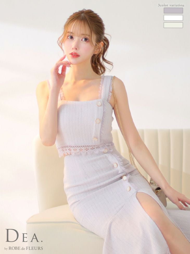 キャバドレス ひざ丈ドレス DEA.byROBEdeFLEURS ディアバイローブドフルール 高級スプリングツイードレースセットアップボタンワンカラースリットノースリーブ膝丈ドレス