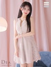 サイドのレースが大人上品で綺麗に☆ SALE [DEA.byROBEdeFLEURS/ディアバイローブドフルール] 高級ジップウエストベルトノースリーブサイドレースワンカラーフレアミニドレス