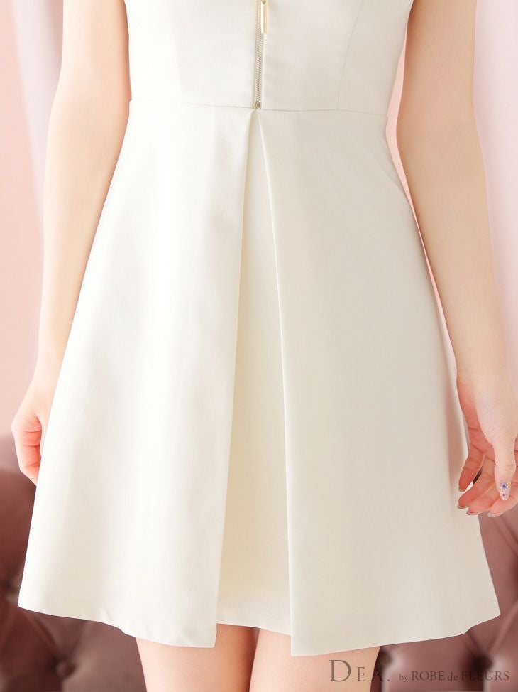 襟×フェイクポケットで上品な印象に☆ [DEA.byROBEdeFLEURS/ディアバイローブドフルール] 高級 ノースリーブ 襟付き フロントジップ フェイクポケット フレアミニドレス