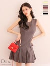 シンプルデザインで大人っぽく☆ [DEA.byROBEdeFLEURS/ディアバイローブドフルール] 高級ノースリーブサイドベルトデザインプリーツフレアミニドレス