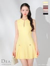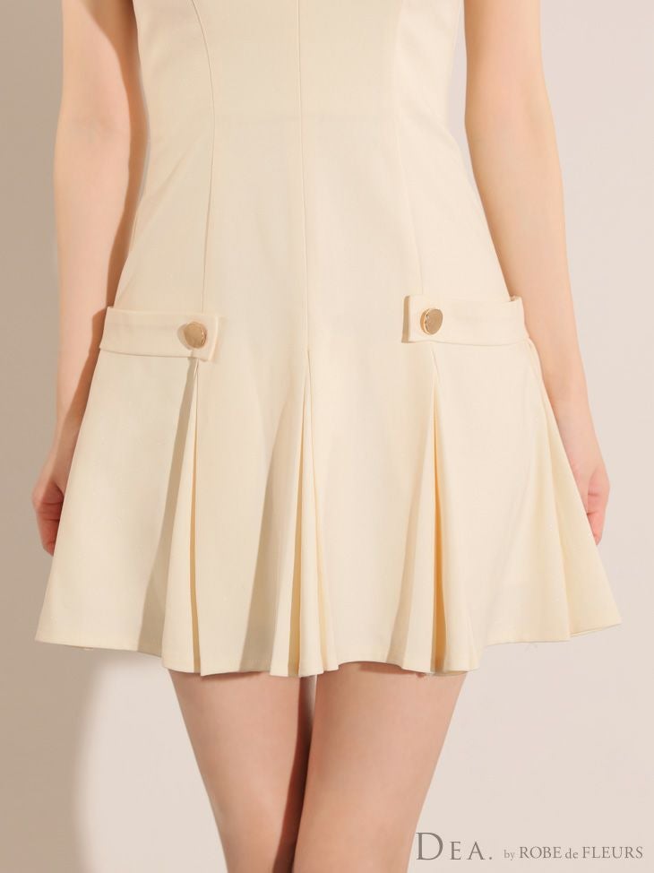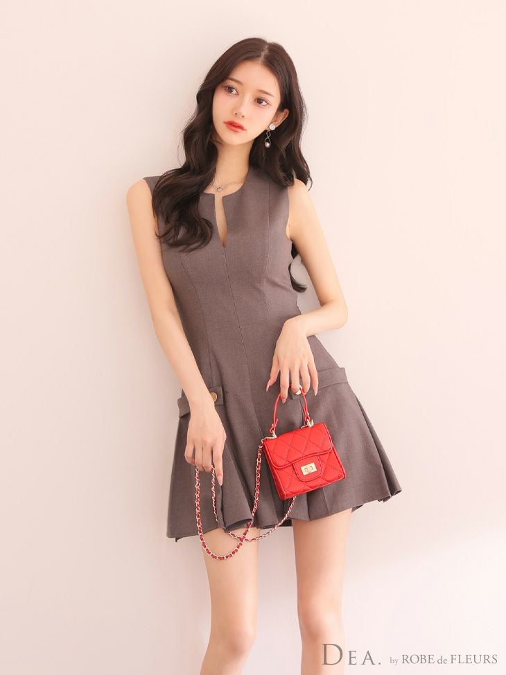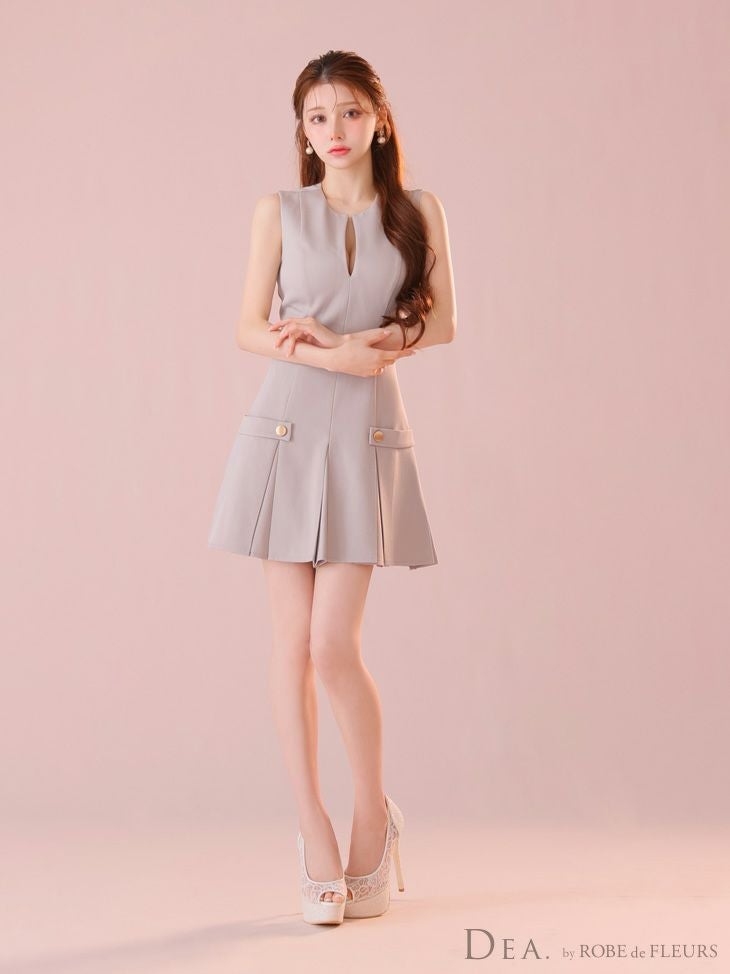4. [DEA.byROBEdeFLEURS/ディアバイローブドフルール] 高級ノースリーブサイドベルトデザインプリーツフレアミニドレス