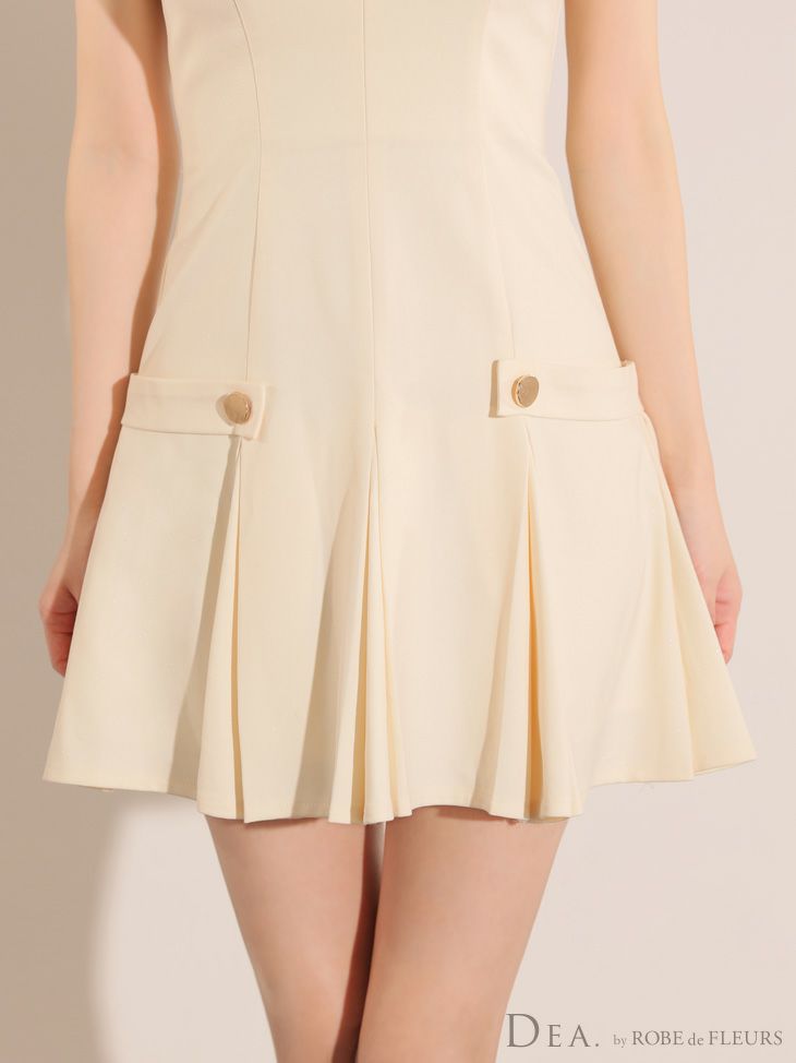 5. [DEA.byROBEdeFLEURS/ディアバイローブドフルール] 高級ノースリーブサイドベルトデザインプリーツフレアミニドレス