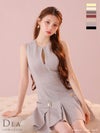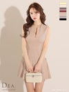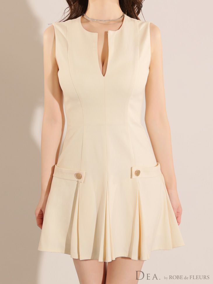 5. [DEA.byROBEdeFLEURS/ディアバイローブドフルール] 高級ノースリーブサイドベルトデザインプリーツフレアミニドレス