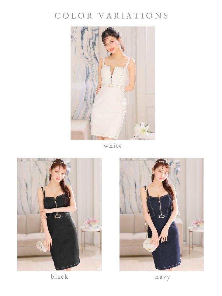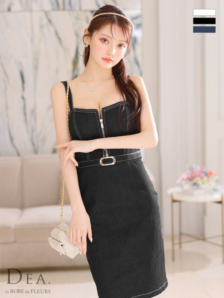 キャバドレス 大きいサイズ DEA.byROBEdeFLEURS ディアバイローブドフルール 高級デニムジップキャミソールウエストベルトタイトミニドレス
