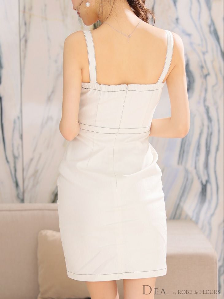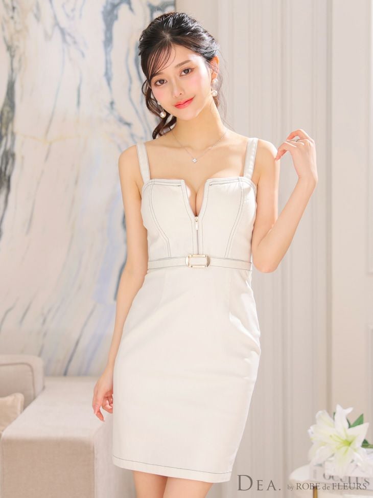 4. SALE [DEA.byROBEdeFLEURS/ディアバイローブドフルール] 高級デニムジップキャミソールウエストベルトタイトミニドレス