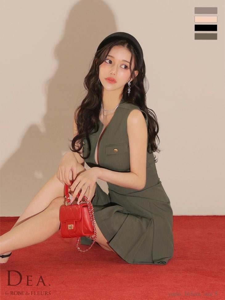 大胆なバストカットがsexy☆ [DEA.byROBEdeFLEURS/ディアバイローブドフルール] 高級 シンプル ノースリーブ ゴールドボタン バストカット 谷間魅せ フレアミニドレス