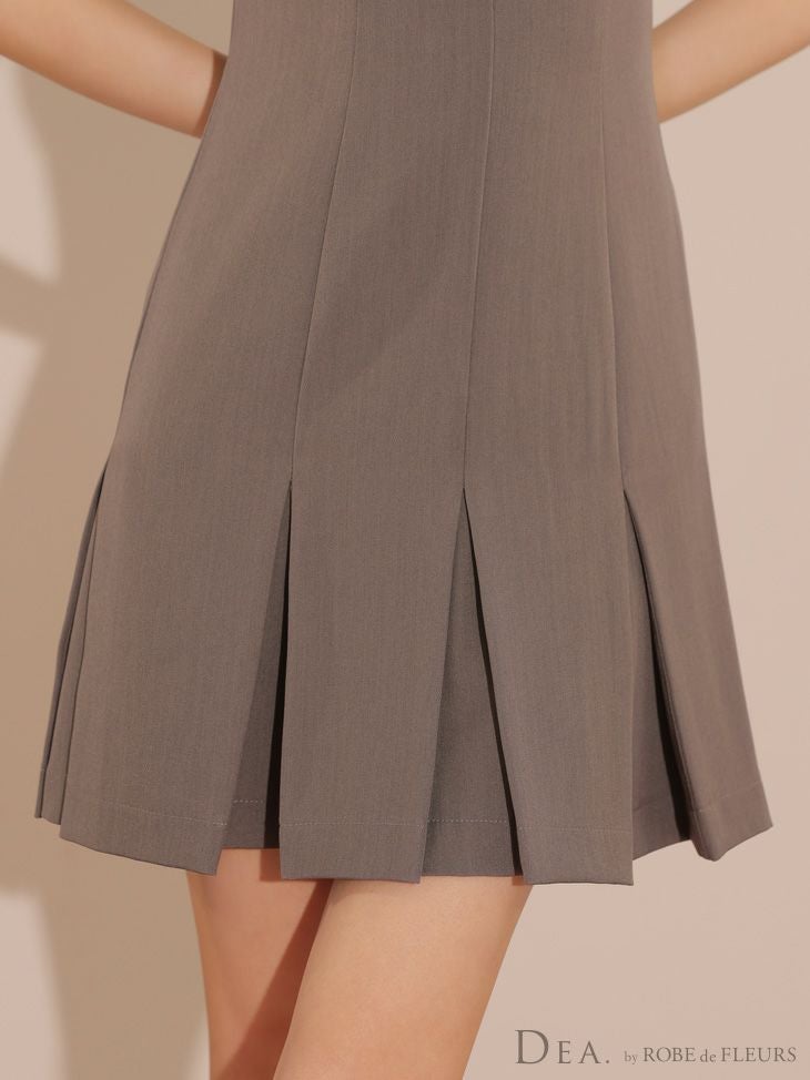 4. [DEA.byROBEdeFLEURS/ディアバイローブドフルール] 高級 シンプル ノースリーブ ゴールドボタン バストカット 谷間魅せ フレアミニドレス