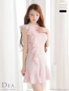 ハイネックで上品な印象に♡ [DEA.byROBEdeFLEURS/ディアバイローブドフルール] 高級 フリル ノースリーブ ハイネック フリンジ ジャガード フレアミニドレス