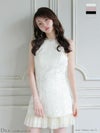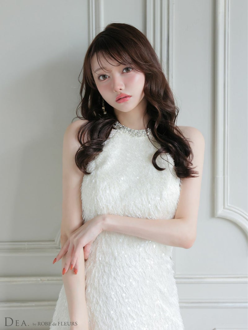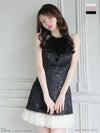 上品な可愛さ溢れる1着♡ [DEA.byROBEdeFLEURS/ディアバイローブドフルール] 高級 ブランド ワンピース Aラインミニドレス ホルターネック スパンコール 胸元カバー フリンジ チュール切替