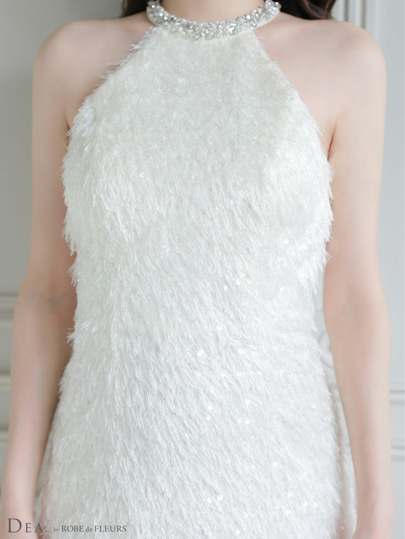 誰よりも輝きを放つ♡ [DEA.byROBEdeFLEURS/ディアバイローブドフルール] 高級 ブランド ワンピース Aラインミニドレス ホルターネック スパンコール 胸元カバー フリンジ チュール切替