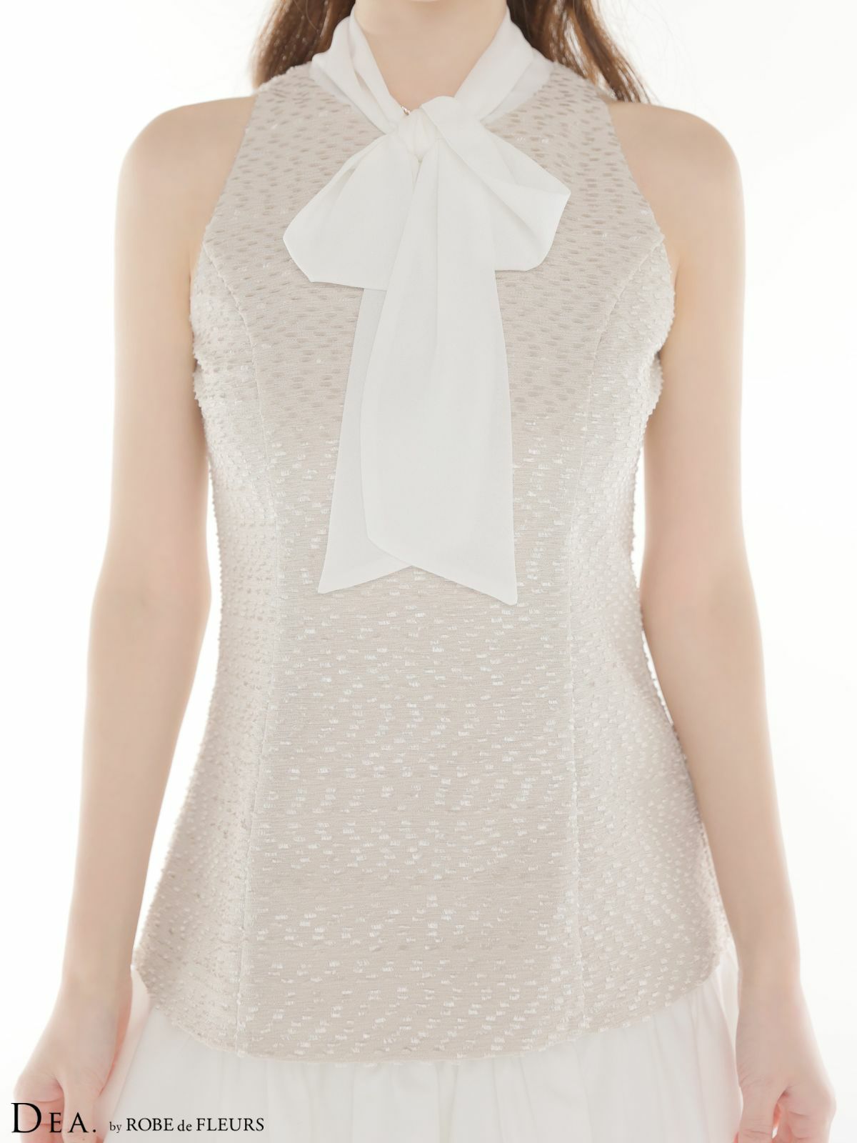 身に纏うだけで可憐な女の子に♡ [DEA.byROBEdeFLEURS/ディアバイローブドフルール] 高級 ブランド ワンピース Aラインミニドレス セットアップ ノースリーブ 大人 ツイード ネックリボン ハイネック シフォン切替