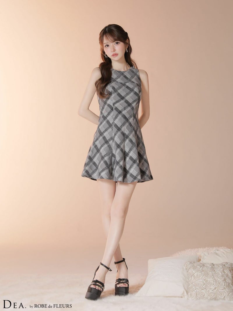 着るだけで上品ガーリースタイルに♡ [DEA.byROBEdeFLEURS/ディアバイローブドフルール] 高級 ブランド ワンピース Aライン胸元カバー ミニドレス ノースリーブ チェック柄 ツイード 大人