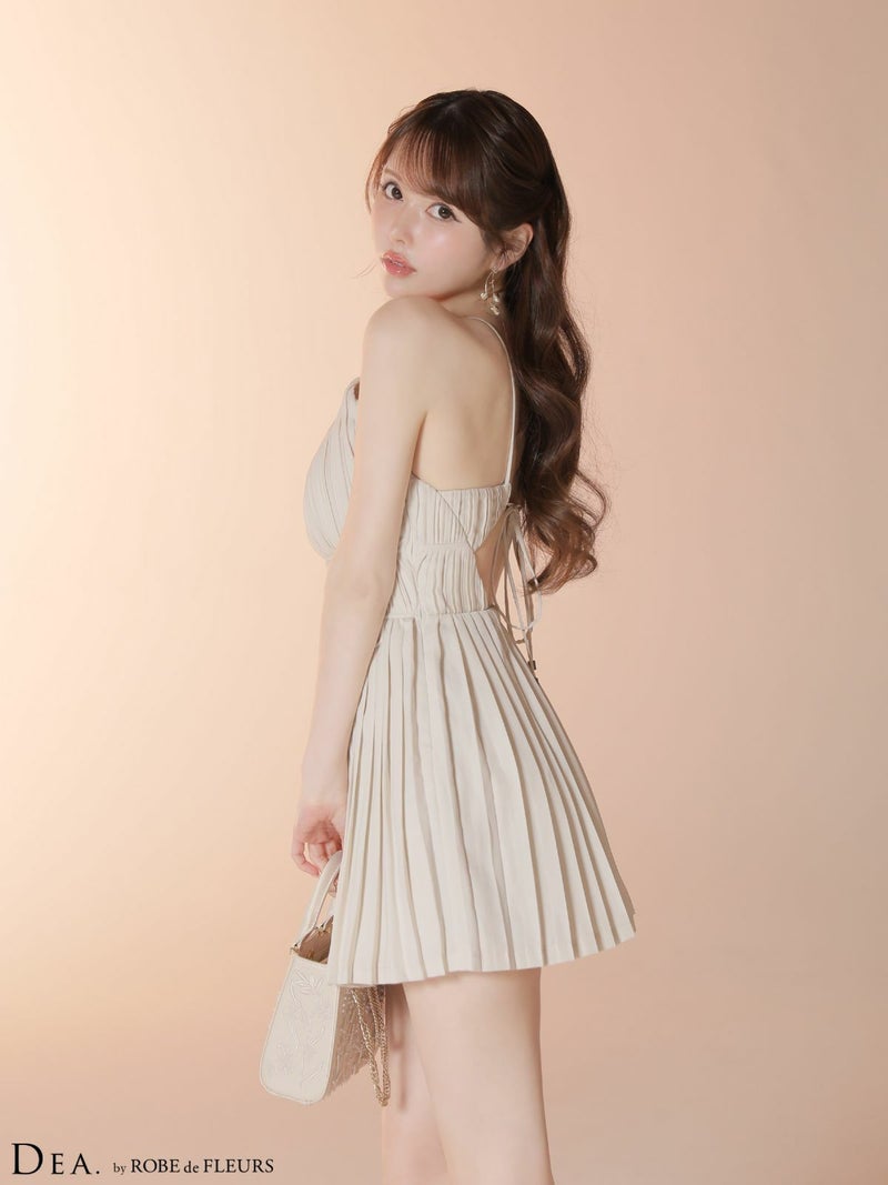 プリーツが美しさを引き立てる♡ 予約商品【6月下旬入荷予定】[DEA.byROBEdeFLEURS/ディアバイローブドフルール] 高級 ブランド ワンピース Aラインミニドレス 谷間 ホルターネック 背中魅せ ジップ プリーツ ワンカラー