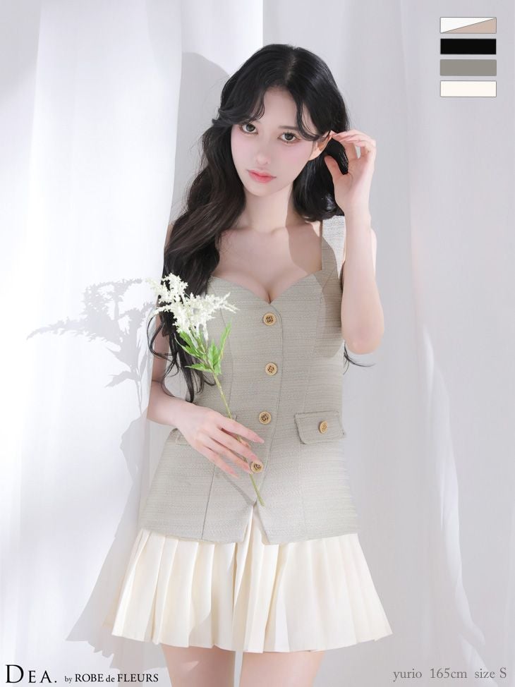 バイカラーでメリハリボディに♡ 予約商品【5月中旬入荷予定】[DEA.byROBEdeFLEURS/ディアバイローブドフルール] 高級 ブランド ワンピース Aラインミニドレス ノースリーブ ツイード ボーダー フロントボタン プリーツ