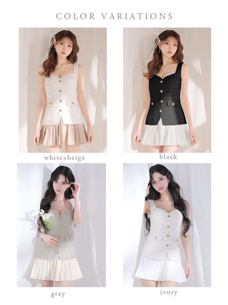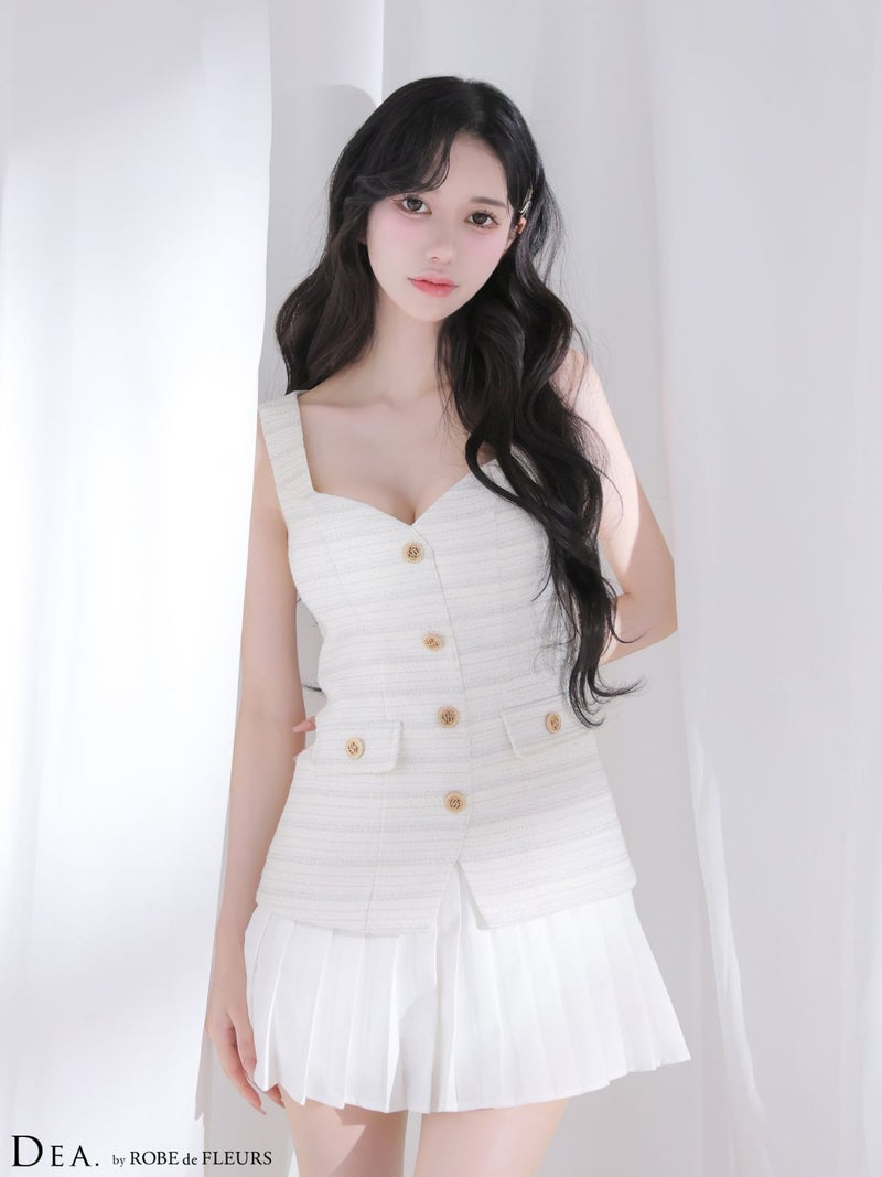 4. 予約商品【5月中旬入荷予定】[DEA.byROBEdeFLEURS/ディアバイローブドフルール] 高級 ブランド ワンピース Aラインミニドレス ノースリーブ ツイード ボーダー フロントボタン プリーツ
