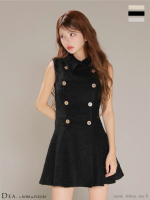 予約商品【10月中旬入荷予定】[DEA.byROBEdeFLEURS/ディアバイローブドフルール] 高級 ブランド ワンピース Aラインミニドレス ノースリーブ 大人 襟付き ダブルボタン シャギーウール