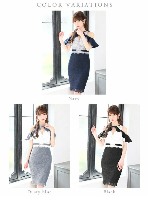他の画像を見る バイカラーでお洒落見え抜群☆ [DEA.byROBEdeFLEURS/ディアバイローブドフルール] 高級バイカラーフリルレース切替ベルトモチーフ肩出し 二の腕カバータイトミニドレス ¥ 26,180 税込 在庫切れ お気に入りに追加