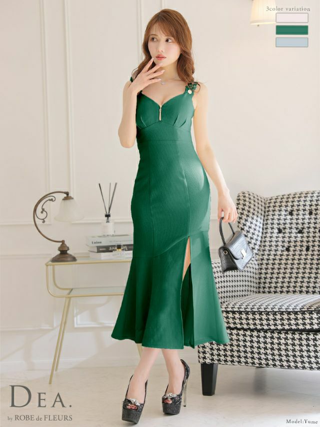 他の画像を見る 同伴やお食事会にもおすすめ☆ [DEA.byROBEdeFLEURS/ディアバイローブドフルール] 高級 ケミカルレース ジップ フリルマーメイド キャミソール 膝丈ドレス ¥ 29,480 税込 在庫切れ お気に入りに追加