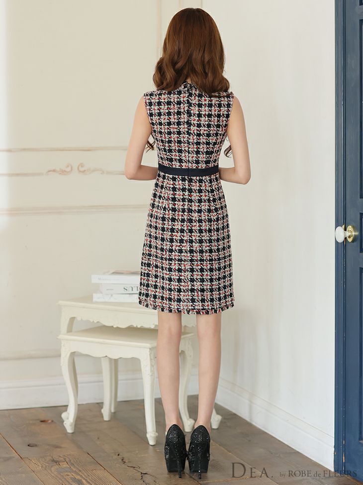 他の画像を見る この冬映えること間違いなし☆ [DEA.byROBEdeFLEURS/ディアバイローブドフルール] 高級 レトロチェック柄 バストカット フロントボタン ワンピース ノースリーブ フレア 谷間魅せ 膝丈ドレス ¥ 27,280 税込 お気に入りに追加