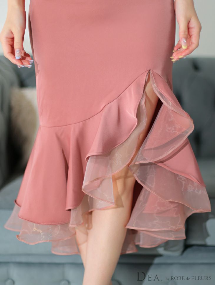 他の画像を見る シルエットが綺麗なマーメードドレス♡ [DEA.byROBEdeFLEURS/ディアバイローブドフルール] 高級ワンカラーショルダーリボンマーメイドフリルノースリーブワンピースタイト膝丈ドレス ¥ 29,480 税込 お気に入りに追加