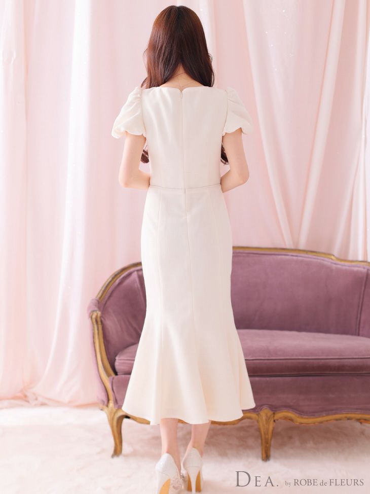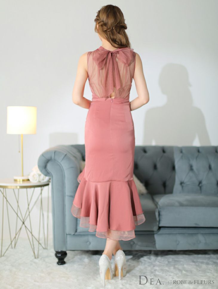 他の画像を見る ミディ丈なのでスタイルUPできる☆ [DEA.byROBEdeFLEURS/ディアバイローブドフルール] 高級ワンカラーショルダーリボンマーメイドフリルノースリーブワンピースタイト膝丈ドレス ¥ 29,480 税込 お気に入りに追加