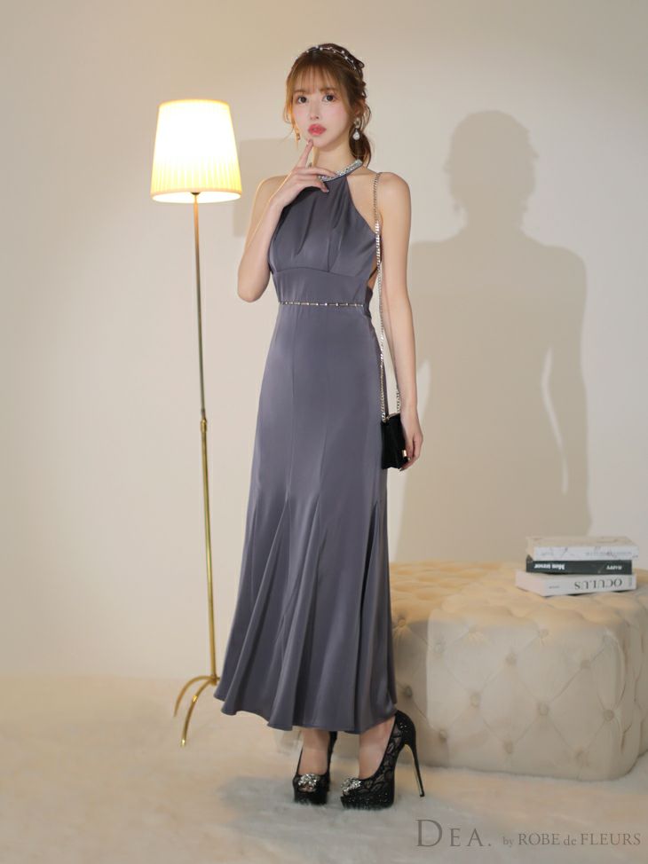 他の画像を見る 美しくセクシーに着こなせる♡ [DEA.byROBEdeFLEURS/ディアバイローブドフルール] 高級 ブランド ワンピース Aラインロングドレス 背中魅せ ホルターネック ウエストリボン ビジュー サテン ¥ 31,680 税込 お気に入りに追加