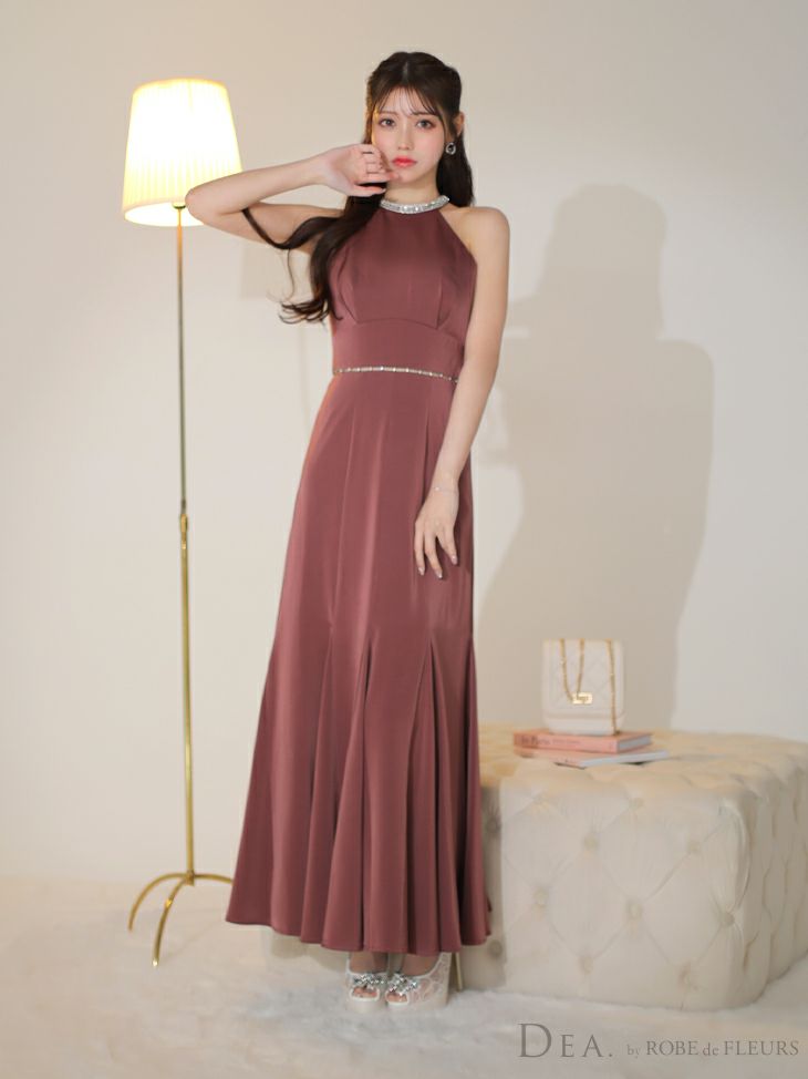 他の画像を見る 首元とウエスト部分に輝くビジュー♡ [DEA.byROBEdeFLEURS/ディアバイローブドフルール] 高級 ブランド ワンピース Aラインロングドレス 背中魅せ ホルターネック ウエストリボン ビジュー サテン ¥ 31,680 税込 お気に入りに追加