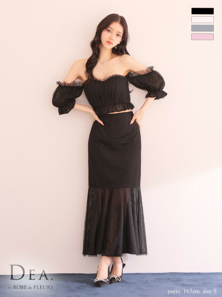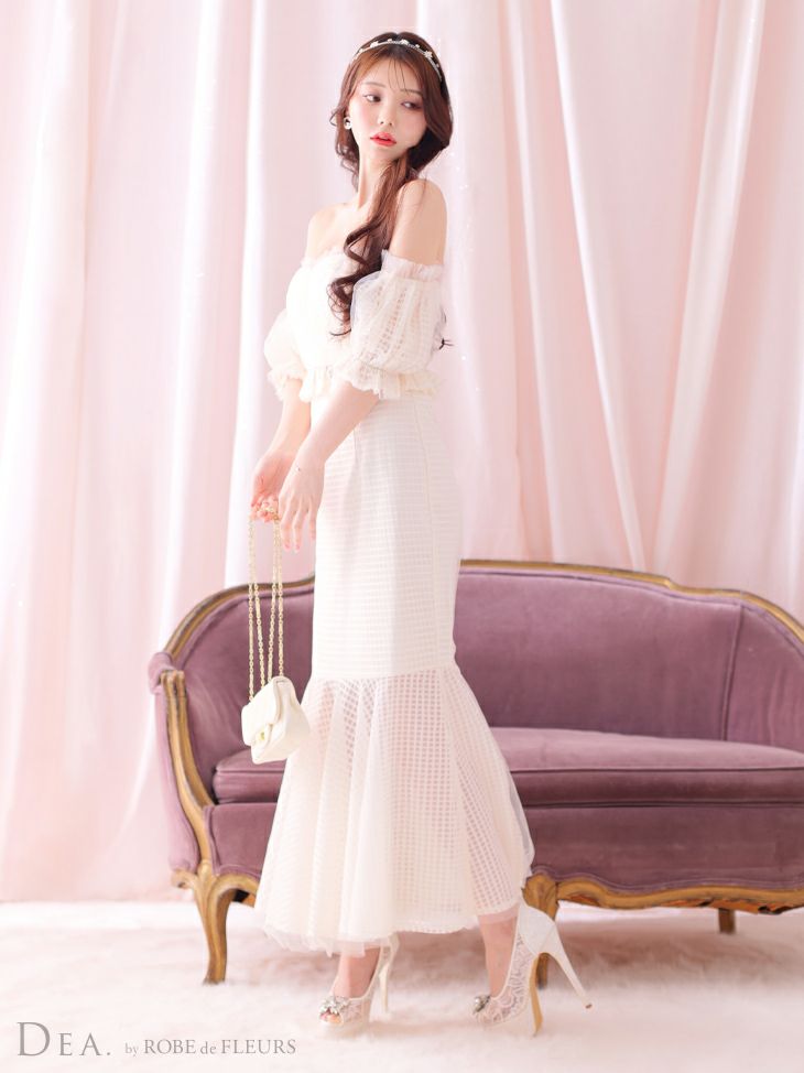 他の画像を見る ふんわりと軽やかな印象に☆ [DEA.byROBEdeFLEURS/ディアバイローブドフルール] 高級オフショルダーチェック柄マーメイドフリルセットアップタイトロングタイトドレス ¥ 30,580 税込 お気に入りに追加
