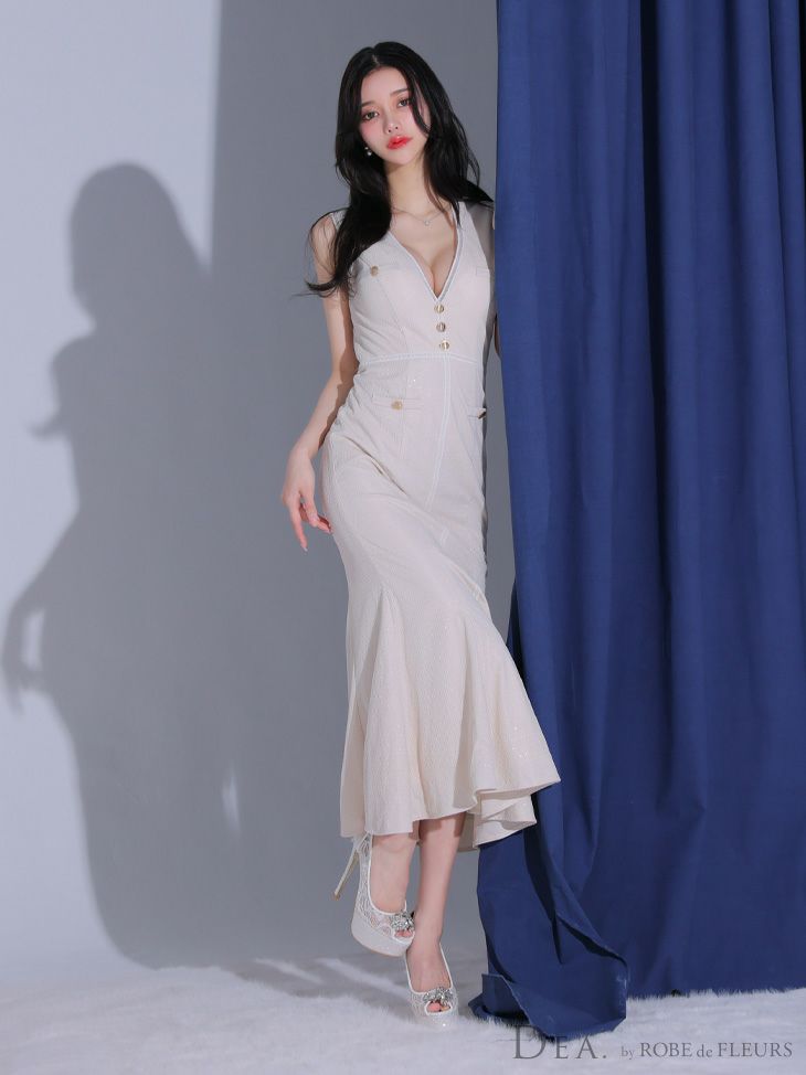 他の画像を見る 涼しげなデザインが可愛い☆ SALE [DEA.byROBEdeFLEURS/ディアバイローブドフルール] 高級 ノースリーブ ゴールドボタン マーメイド タイトロングドレス ¥ 33,880 ¥ 27,104 税込 お気に入りに追加