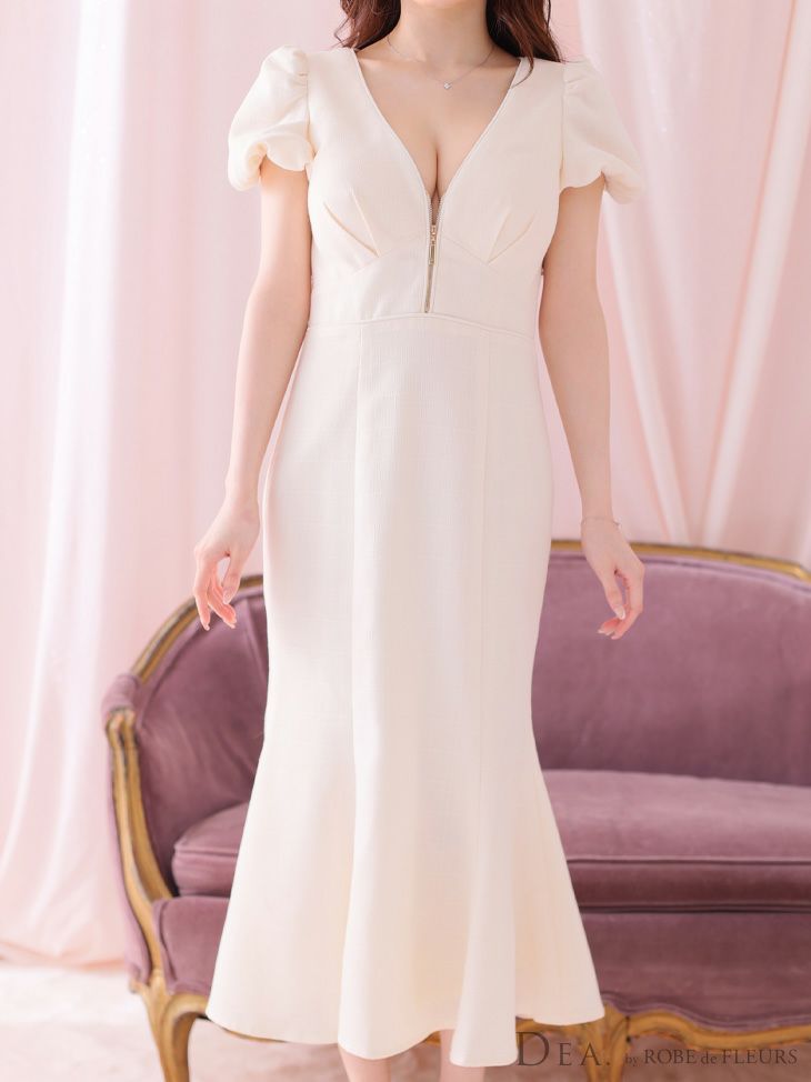 他の画像を見る 清楚かつ使いやすいセクシーにもなる1着☆ SALE [DEA.byROBEdeFLEURS/ディアバイローブドフルール] 高級 フロントジップ 半袖 パフスリーブ ワンピース 膝丈ドレス ¥ 29,480 ¥ 20,636 税込 お気に入りに追加