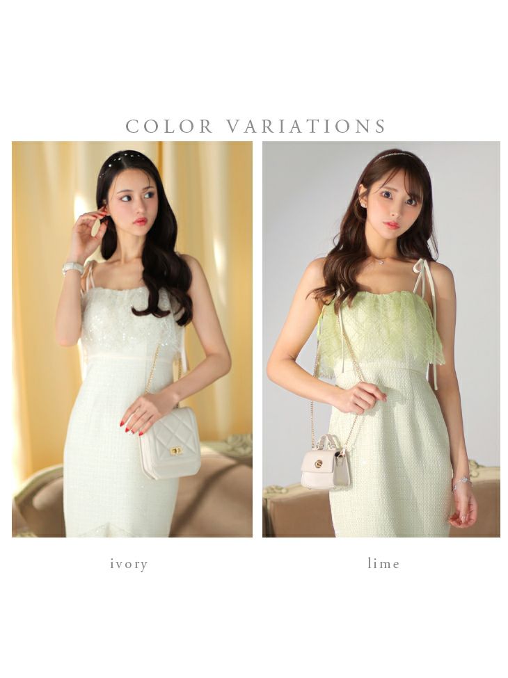 他の画像を見る マーメイドが大人上品に演出! [DEA.byROBEdeFLEURS/ディアバイローブドフルール] 高級 スプリングツイード キャミソール リボン ワンカラ ーマーメイド ロングテール フレア 膝丈ドレス ¥ 32,780 税込 在庫切れ お気に入りに追加
