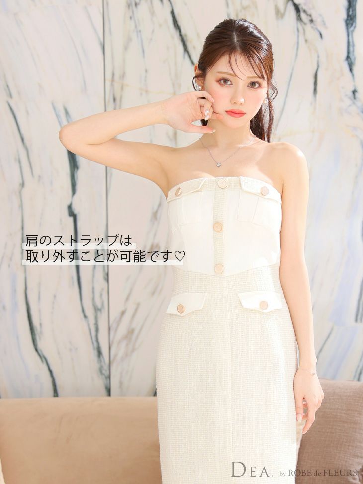 他の画像を見る デニム×ツイードが大人上品に演出☆ [DEA.byROBEdeFLEURS/ディアバイローブドフルール] 高級スプリングツイードデニムキャミソールボタン2wayタイトミニドレス ¥ 27,280 税込 在庫切れ お気に入りに追加
