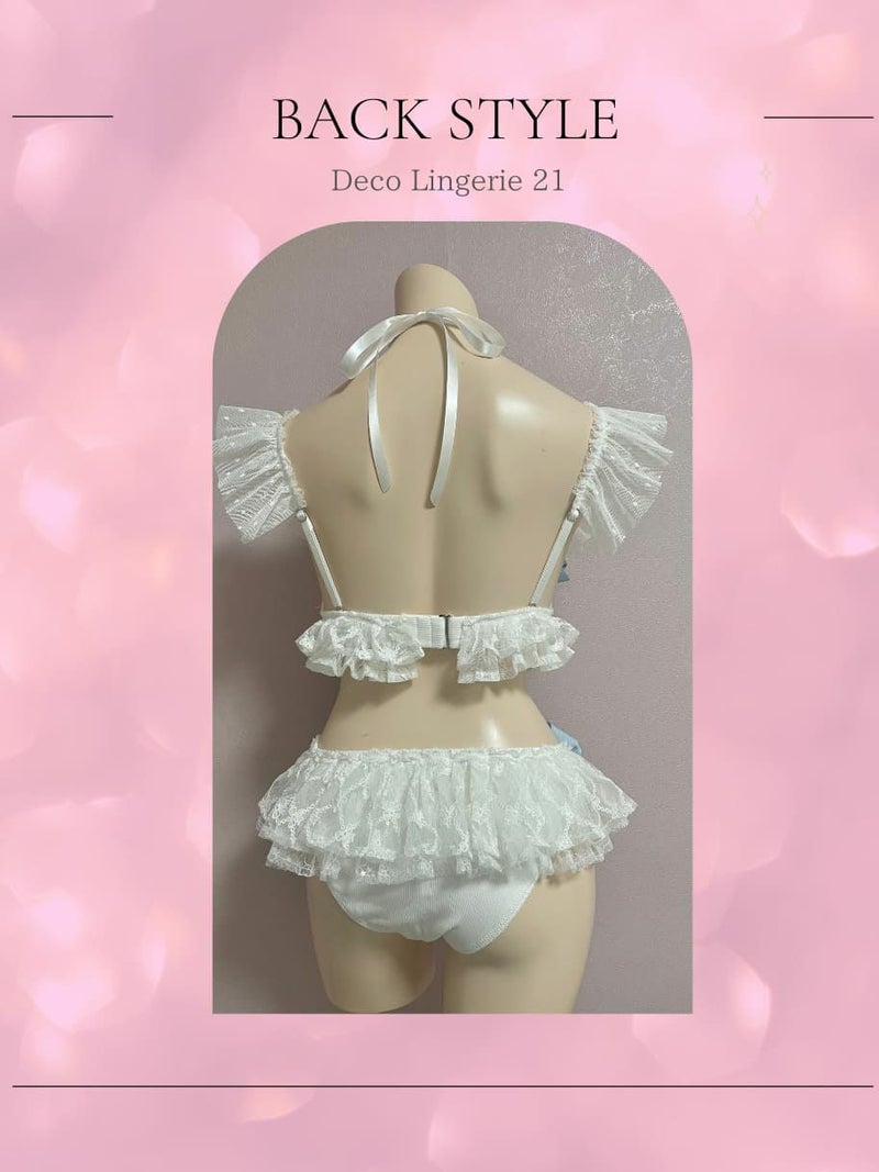 3. [DecoLingerie/デコランジェリー] [水着] 高級 刺繍レース リボン フリル スパンコールレース キュート ビキニ 上下セット[ビキニ/フリルショーツ]