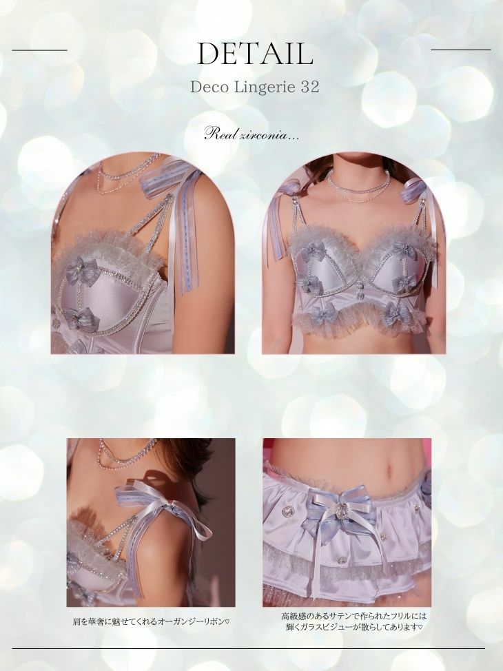 3. [DecoLingerie/デコランジェリー] [勝負下着] 高級 ブランド ビスチェ ラメチュール ストーン オーガンジー リボン 4点セット[ブラ/ウエストフリル/ショーツ/チョーカー]